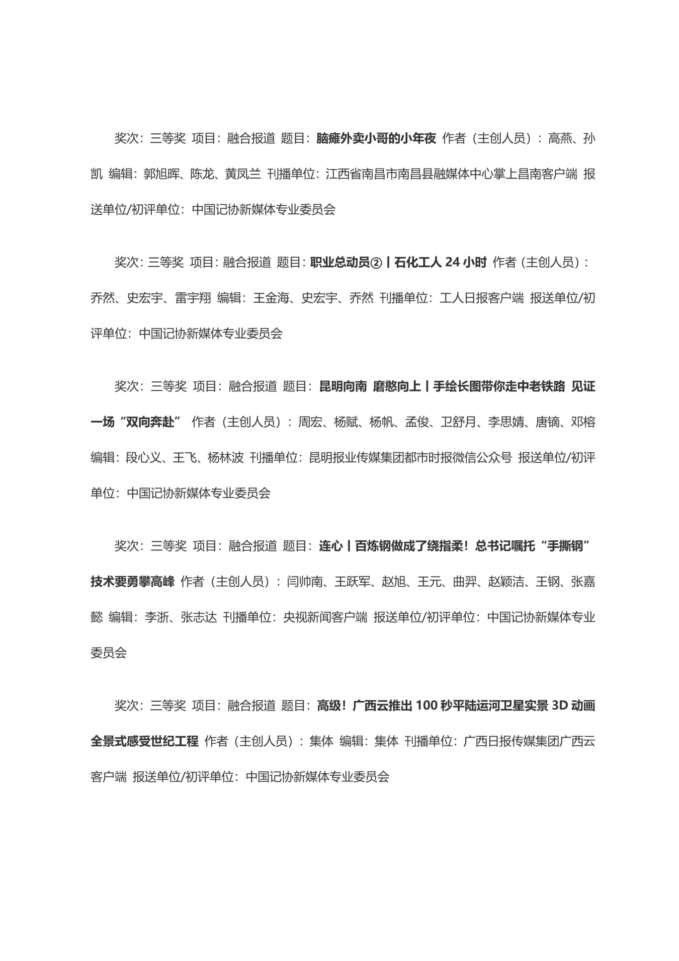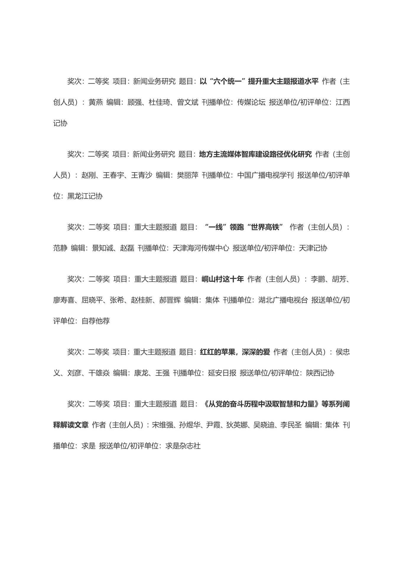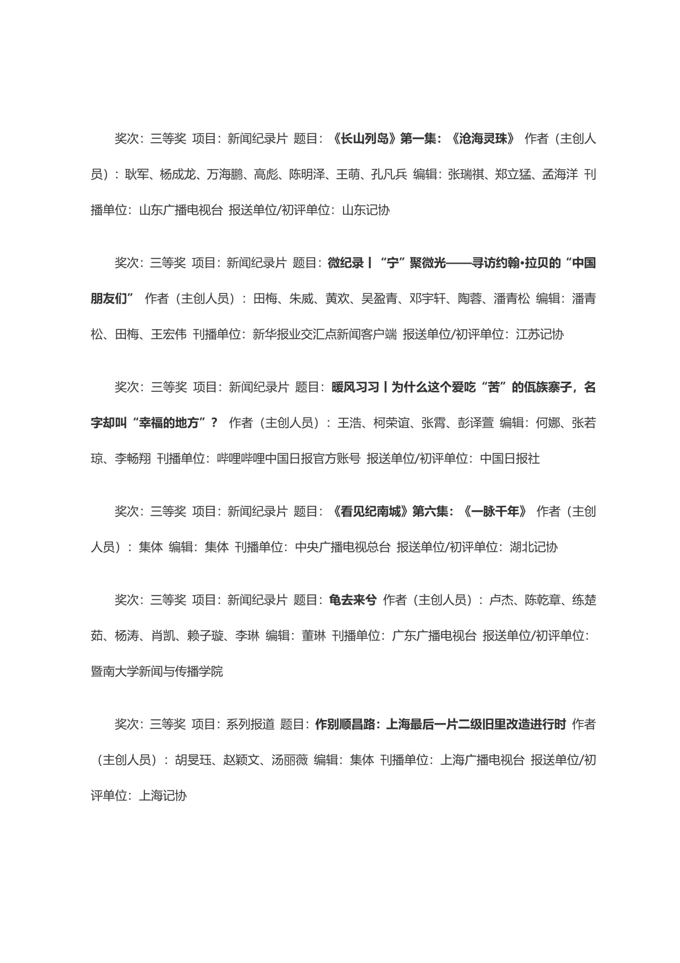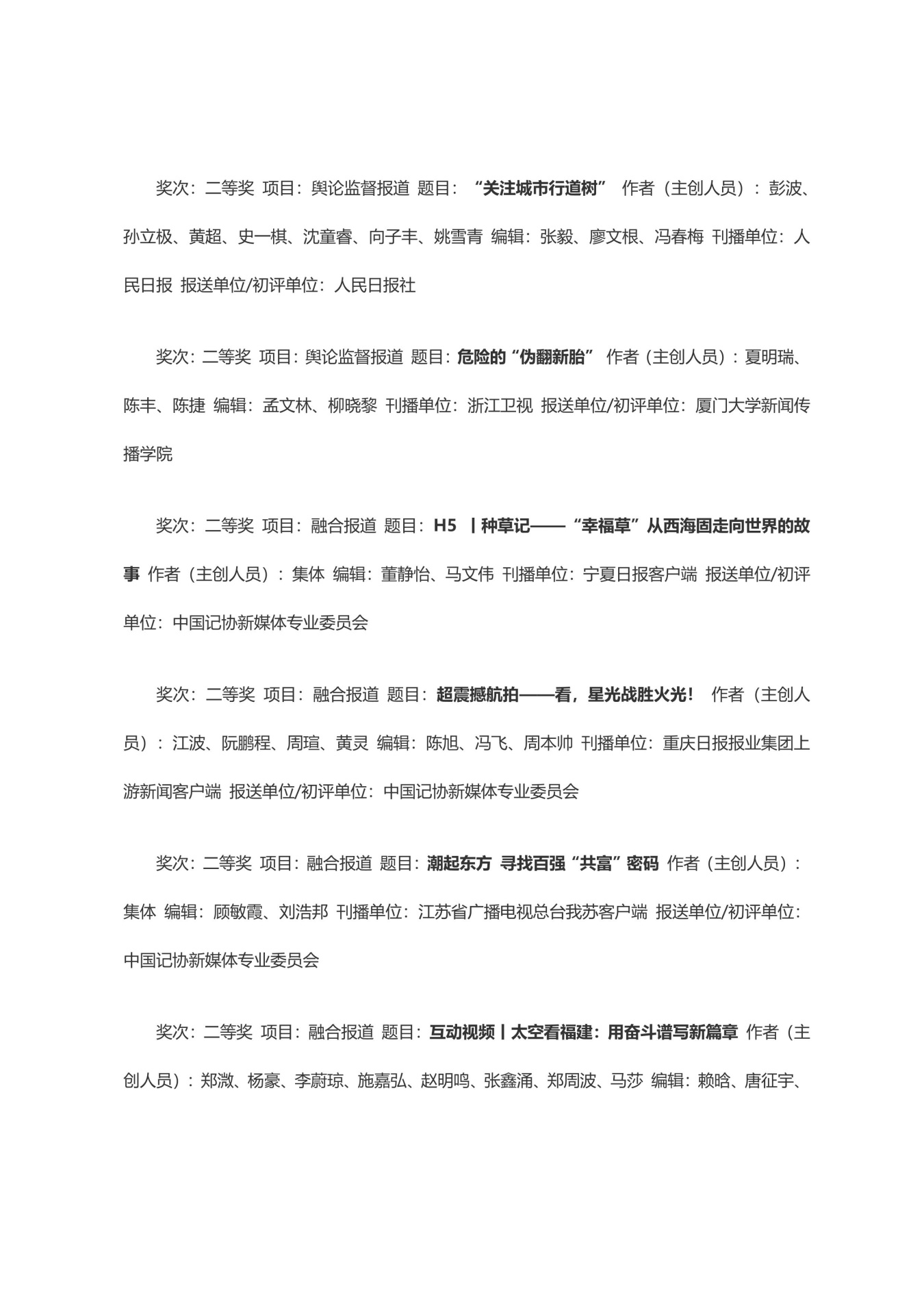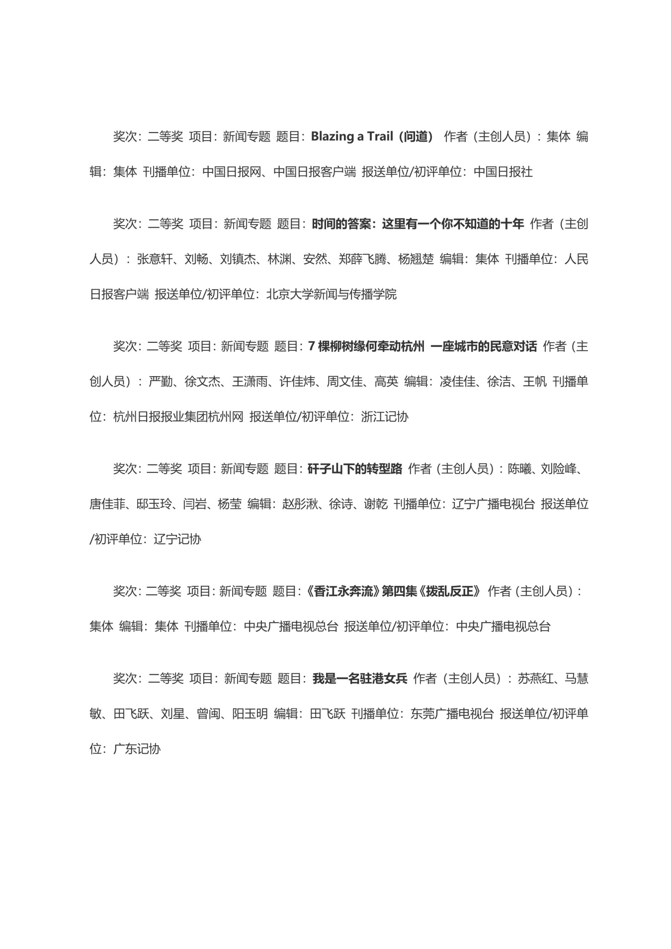 第三十三届中国新闻奖获奖作品目录