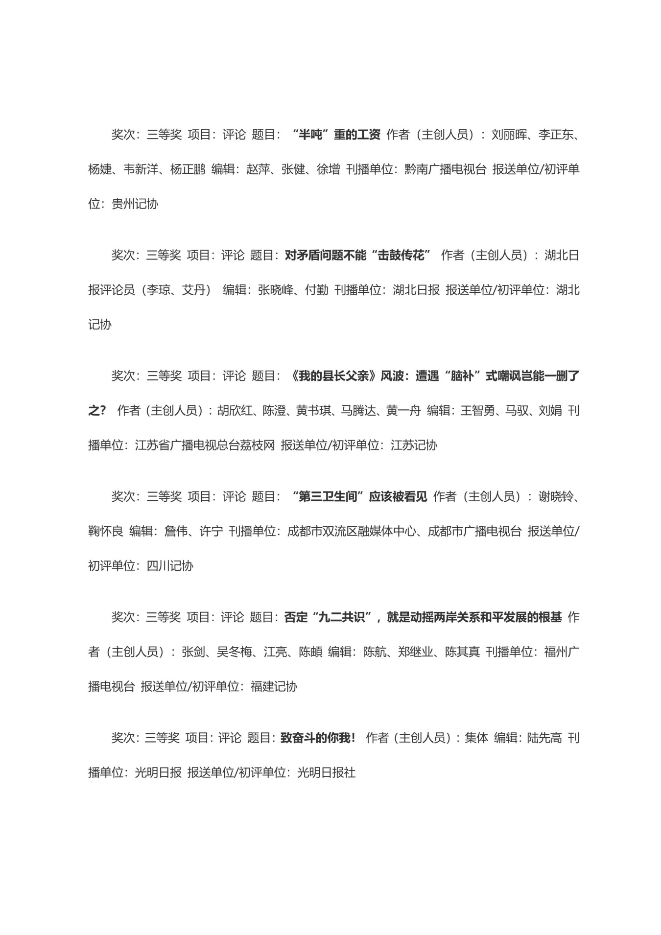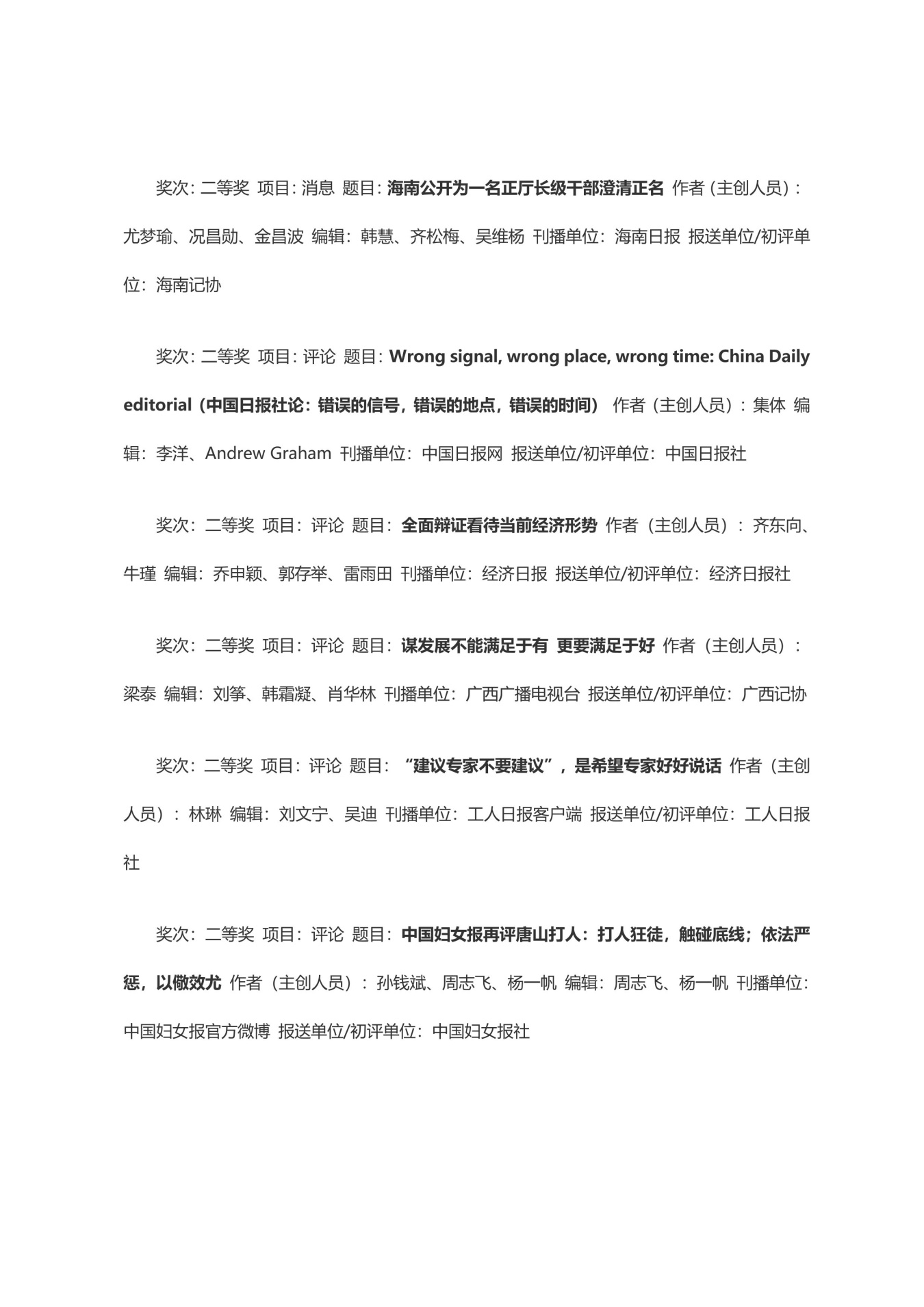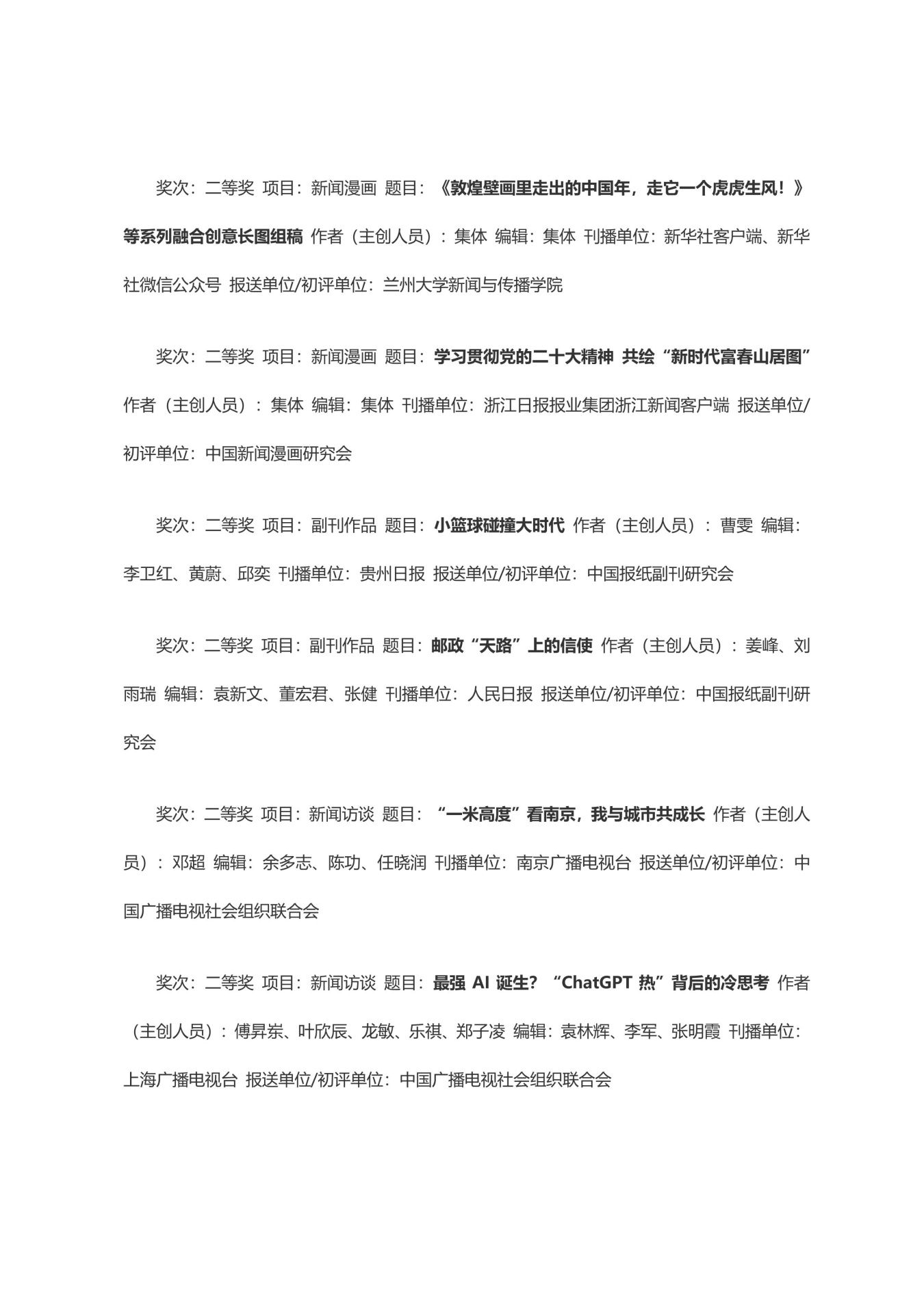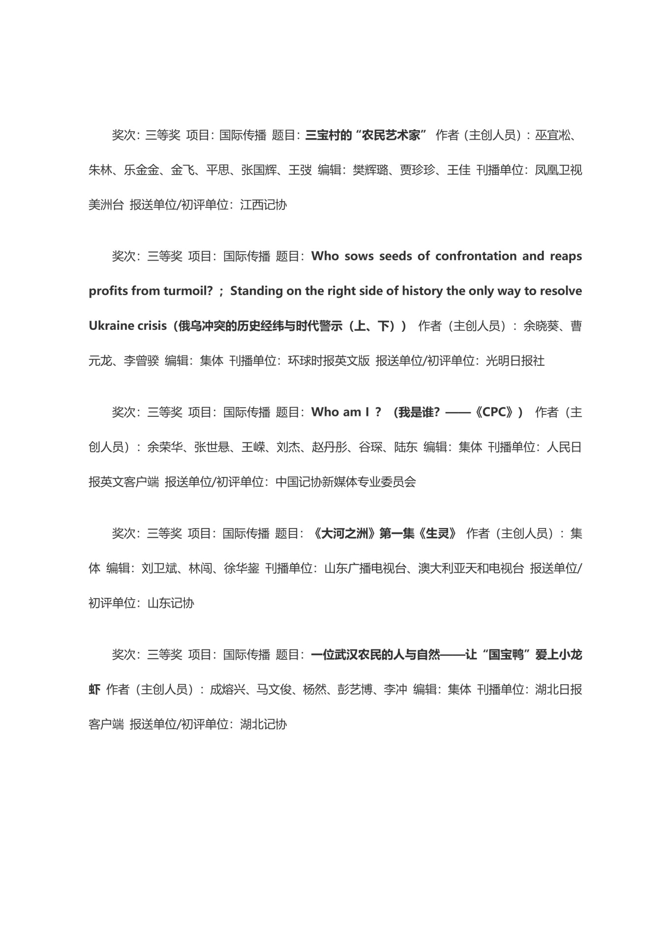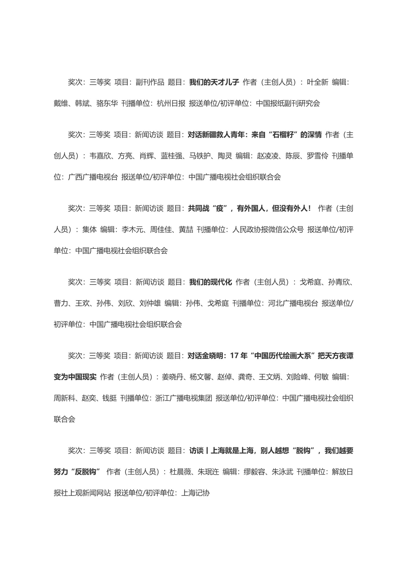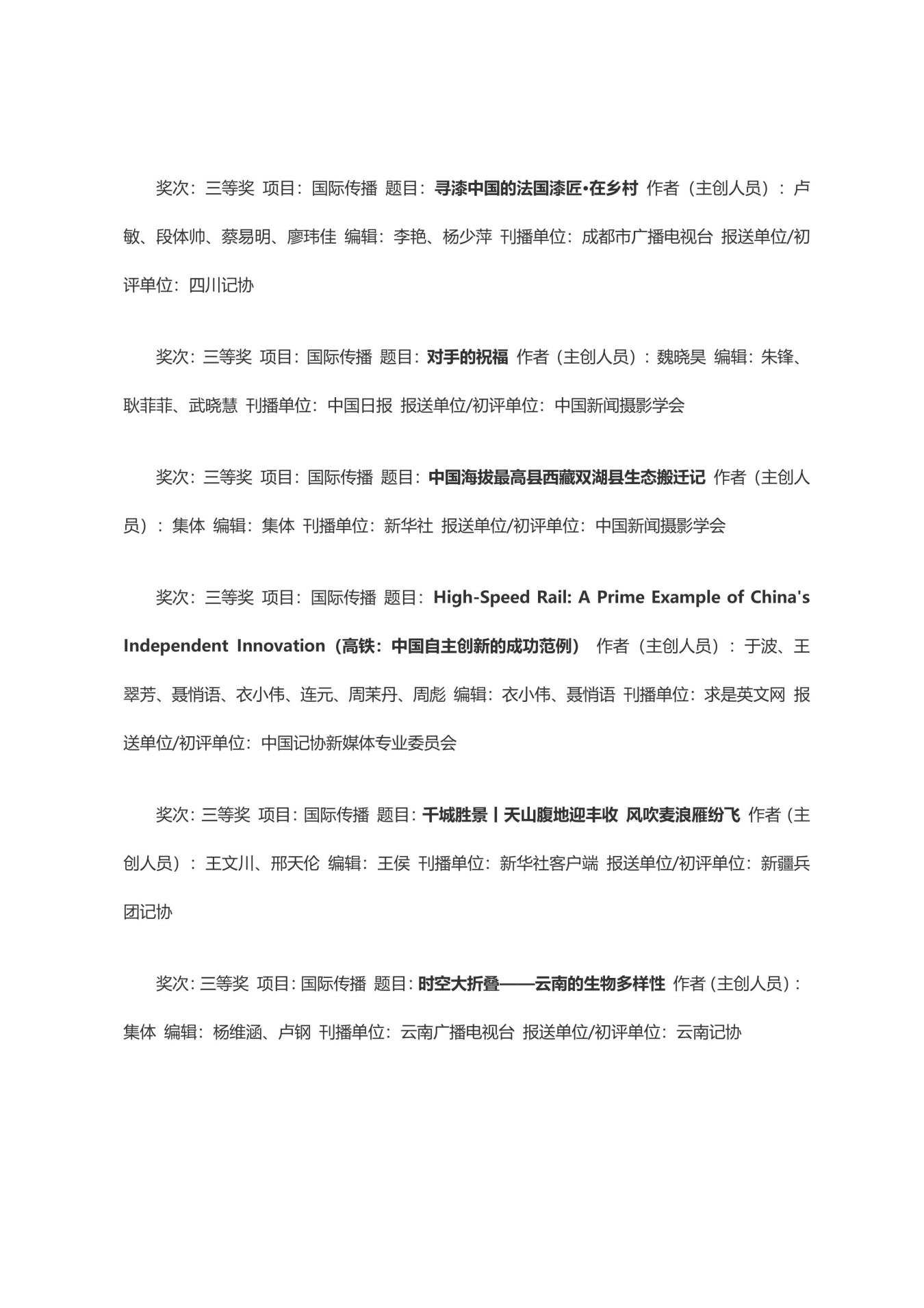 第三十三届中国新闻奖获奖作品目录