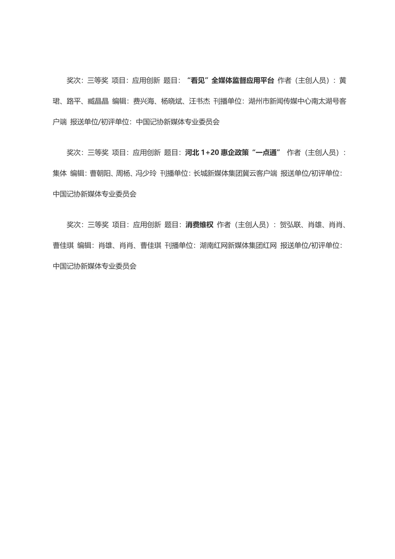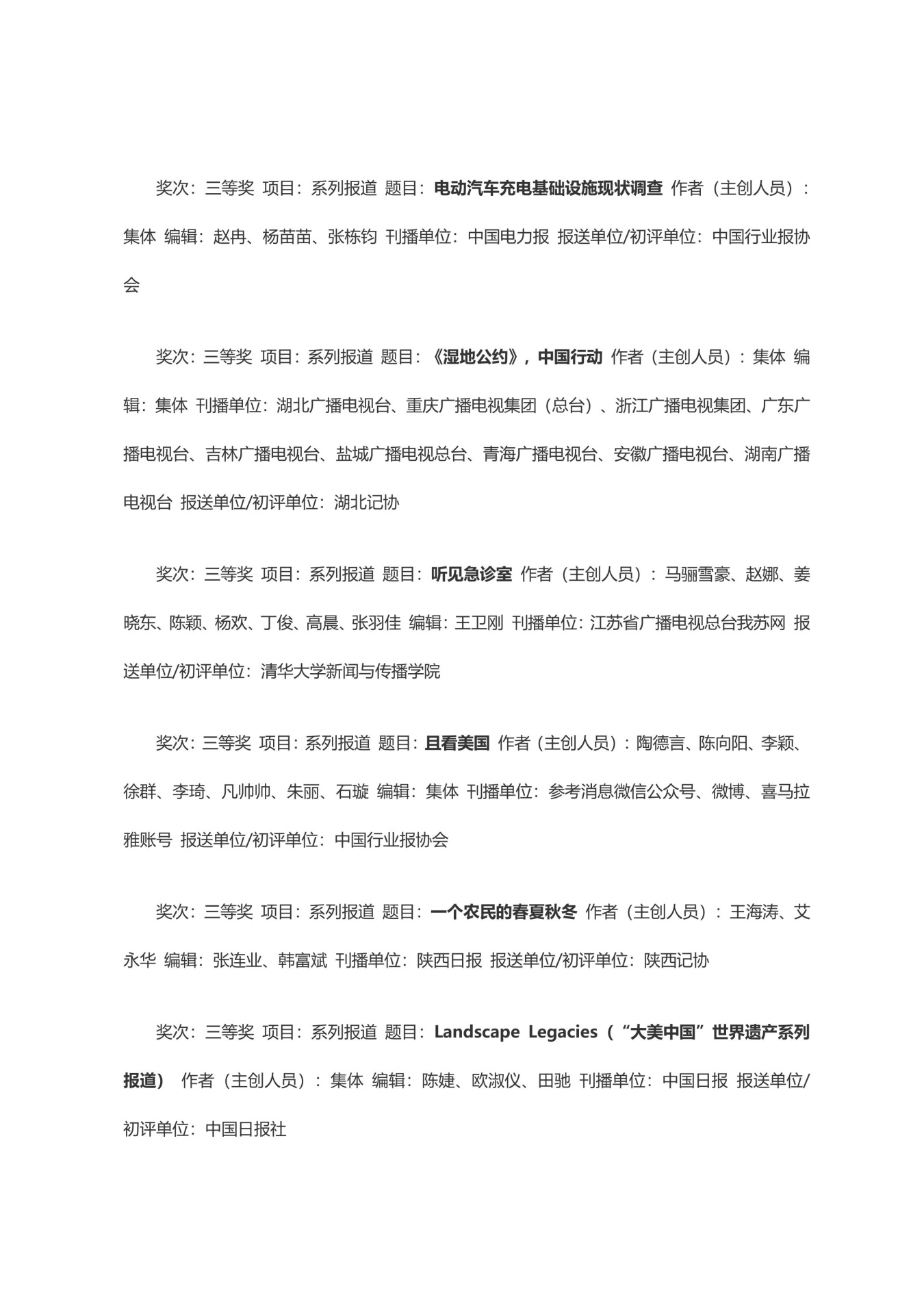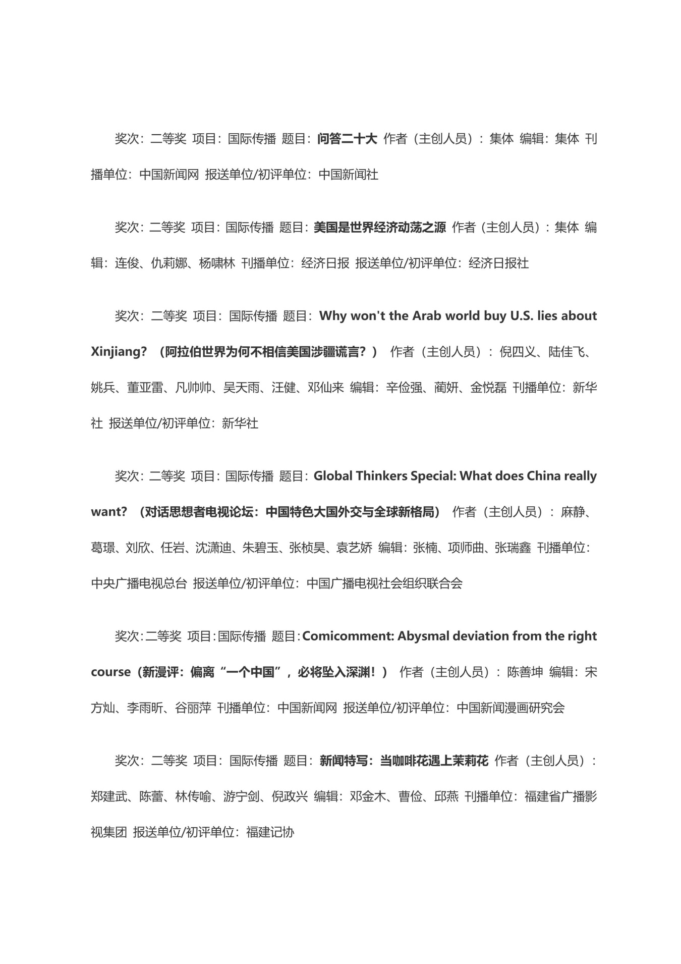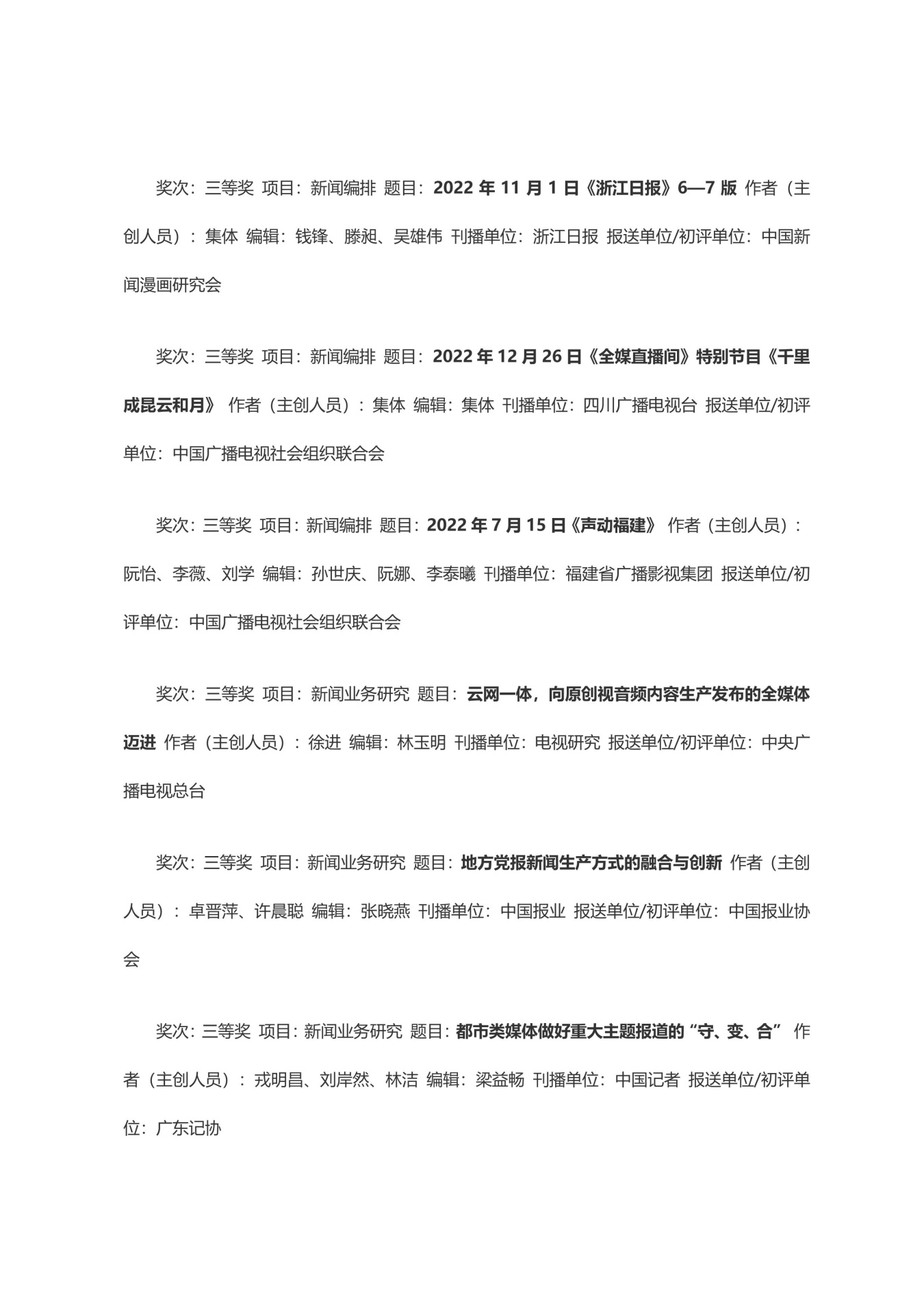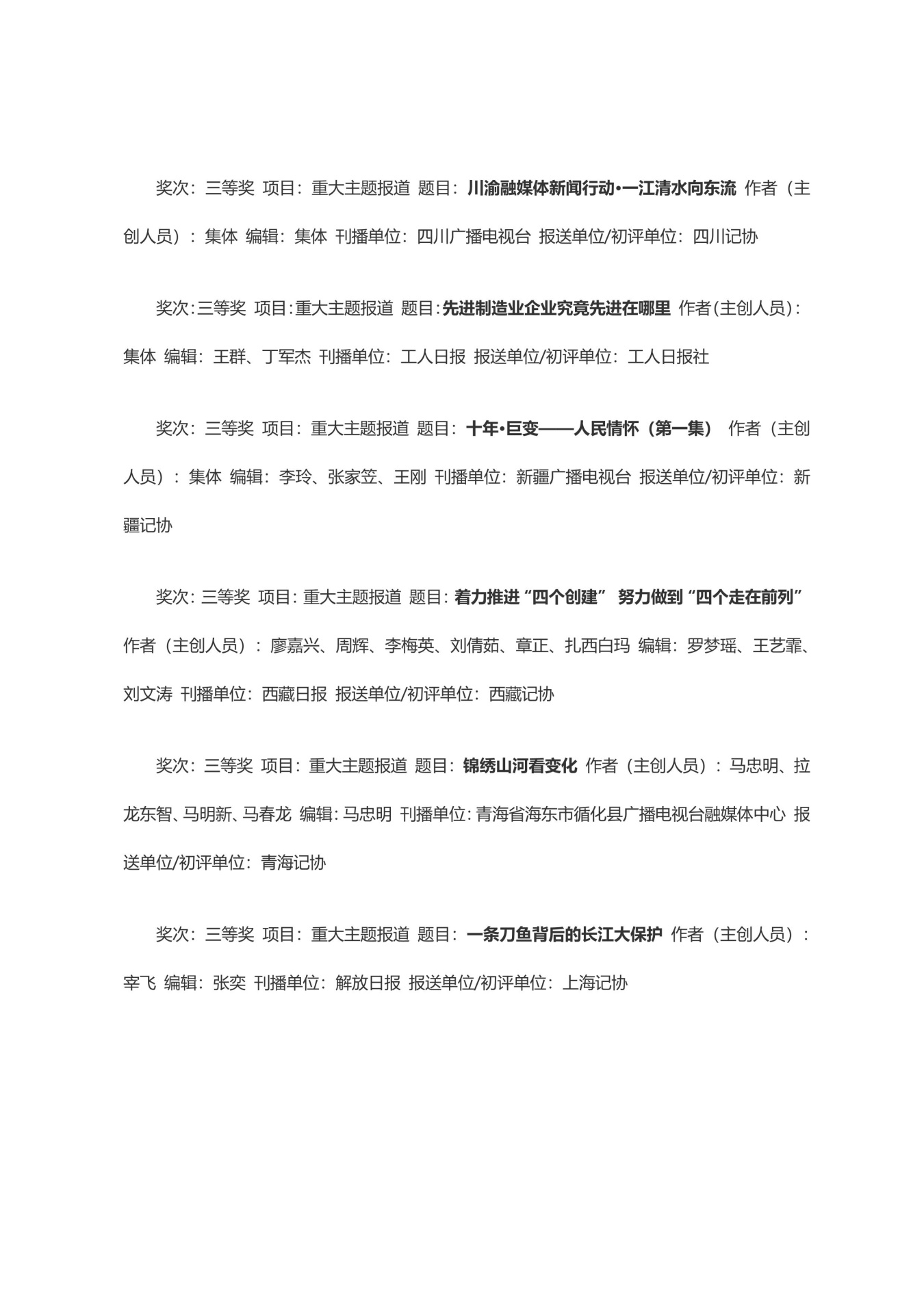 第三十三届中国新闻奖获奖作品目录