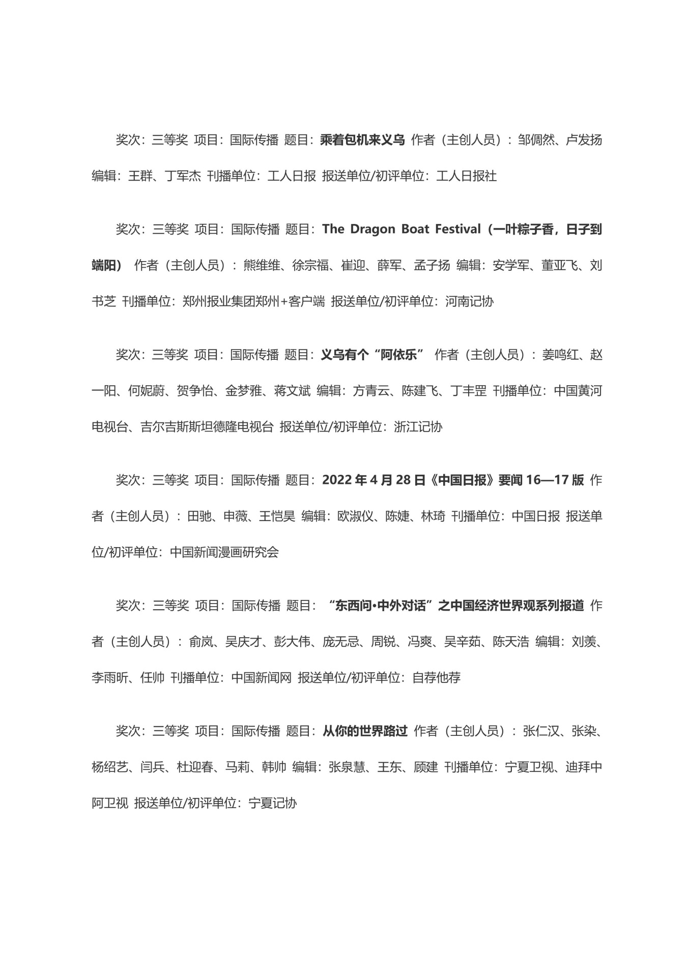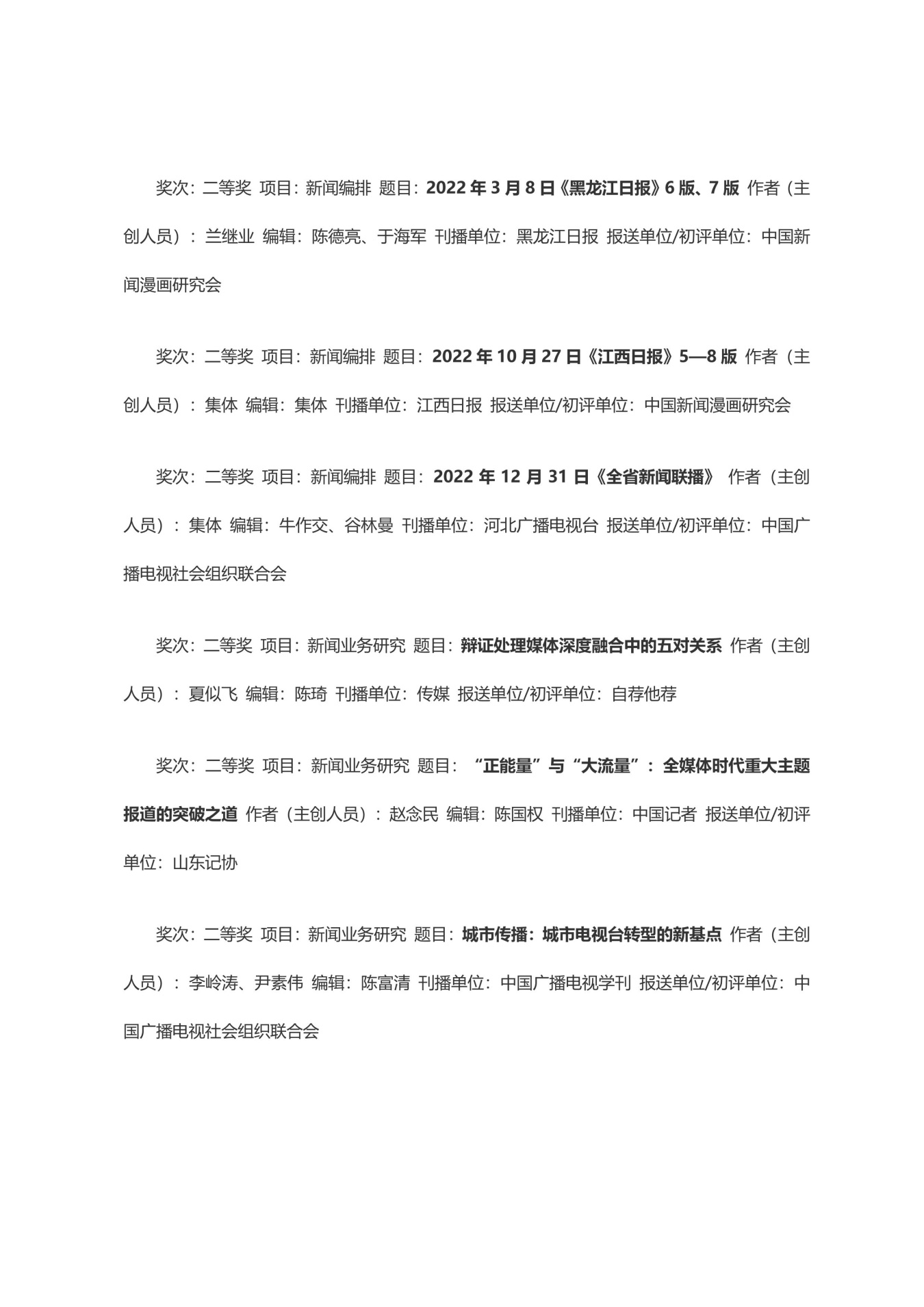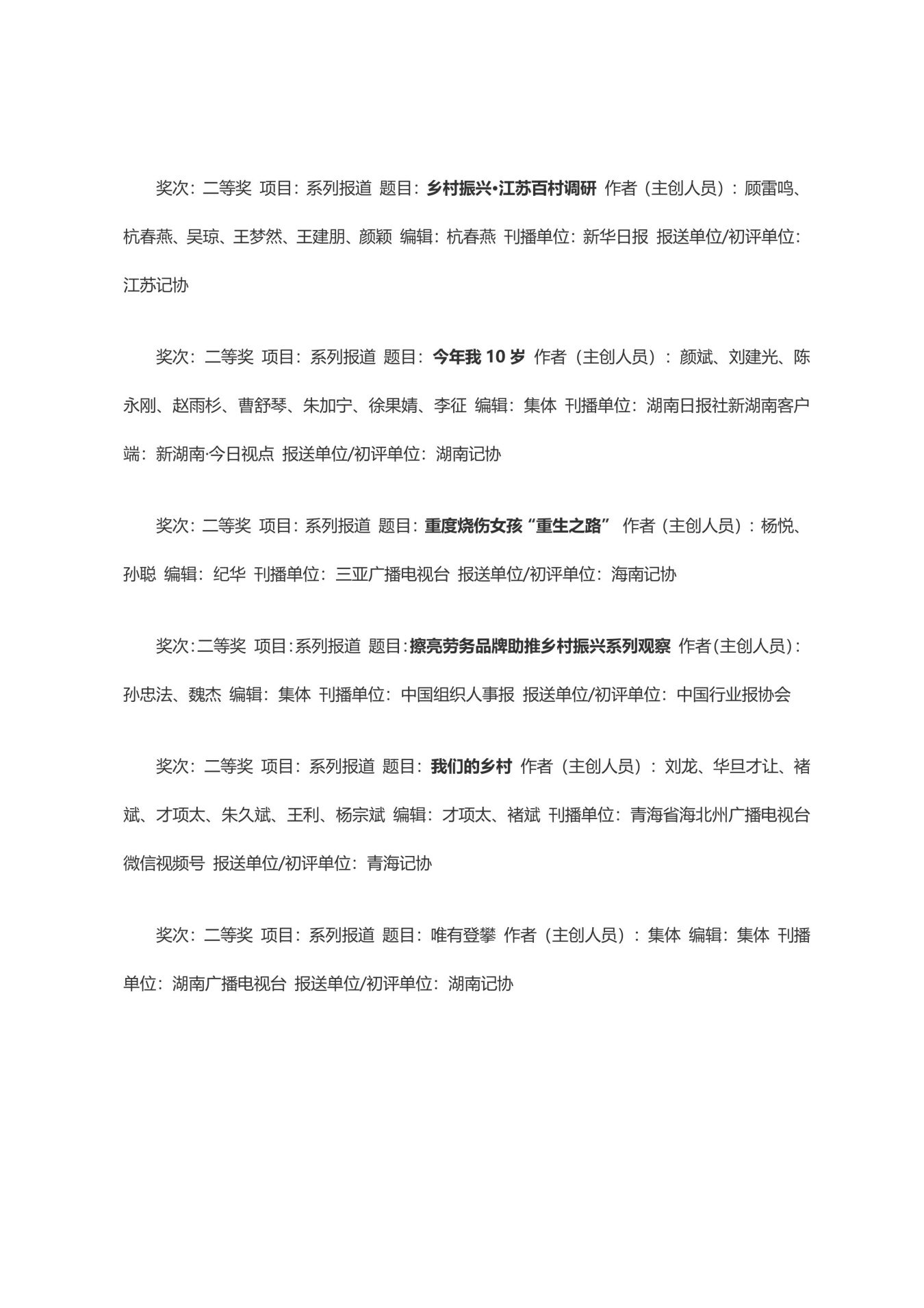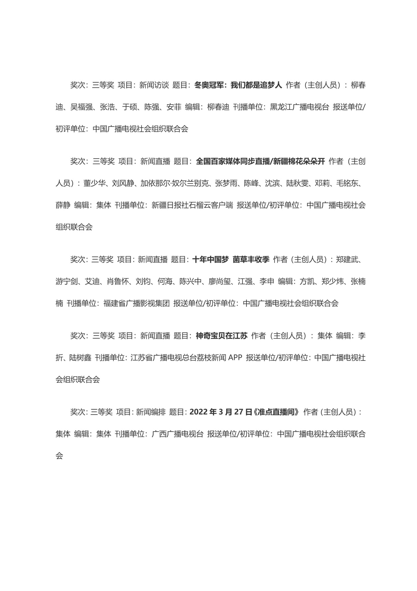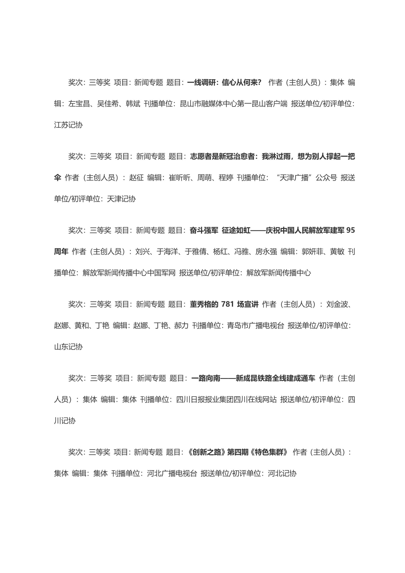 第三十三届中国新闻奖获奖作品目录