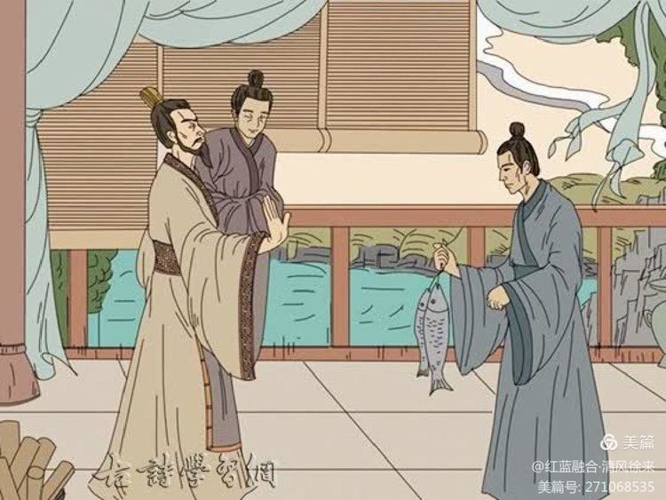 2.“公仪休拒鱼”:战国时期,鲁国国相公仪休奉职循理,以德治国。他有一嗜好,就是特别喜欢吃鱼。一天,有人带着一筐上等新鲜鱼给公仪休送来,但他坚辞不受。送鱼者大为不解,问其原因,他说:“道理很简单,我身为宰相,俸禄足够自己买鱼的开销,假如今天因接受别人的鱼而被罢免官职,那这些人就不一定再送给我鱼,我自己也可能买不起鱼,所以我不能接受。”