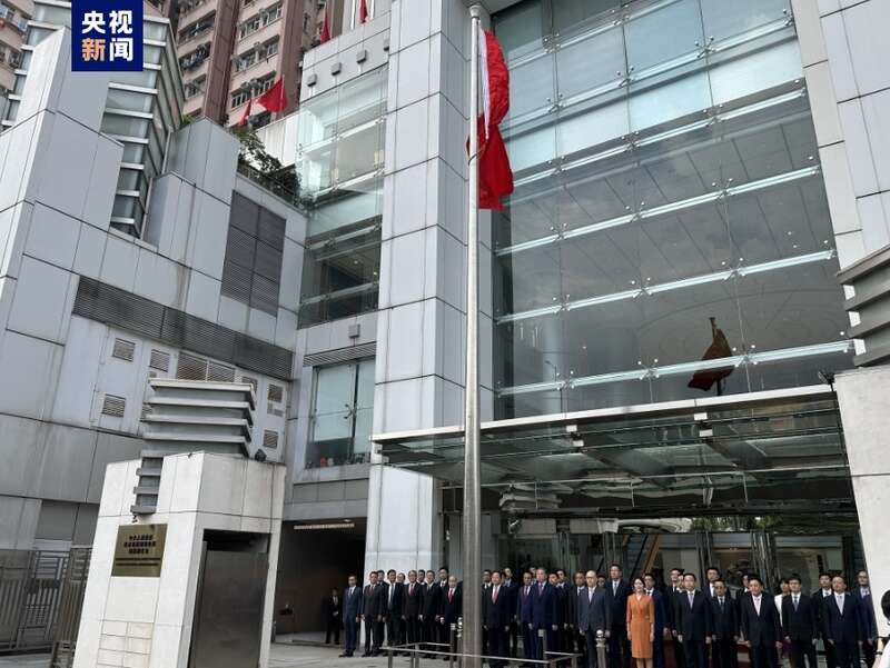 7月1日清晨,中央驻港机构举行升旗仪式,庆祝香港回归祖国27周年。
