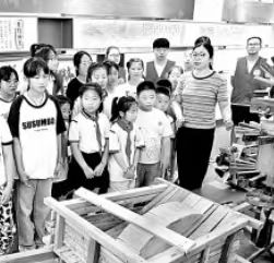 夏令营孩子们与常州大学经济学院大学生携手走进淮盐文化展览馆。朱华南摄/光明图片