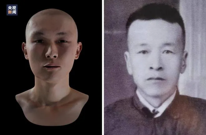 崔海治烈士(1924-1947)容貌复原图,与其哥哥照片(右)对比。