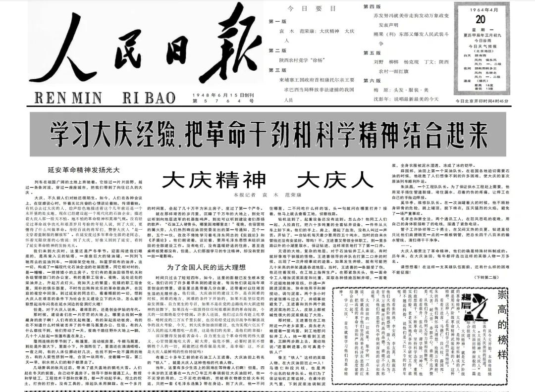 长篇通讯《大庆精神 大庆人》