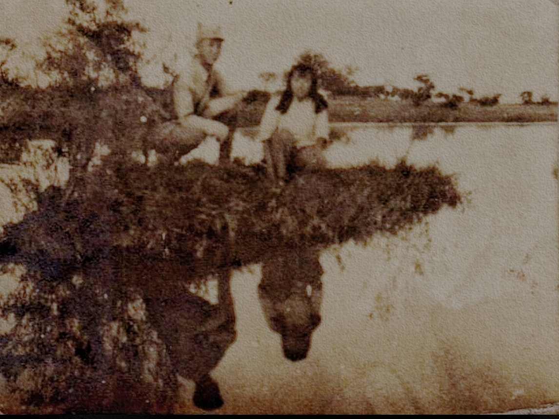胶东抗大时期,衣向璞(时任卫生队副指导员)与爱人罗义淮(时任宣传股股长)在驻地楚留店村河滩前留影。