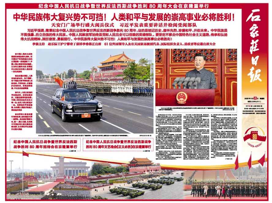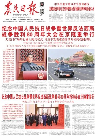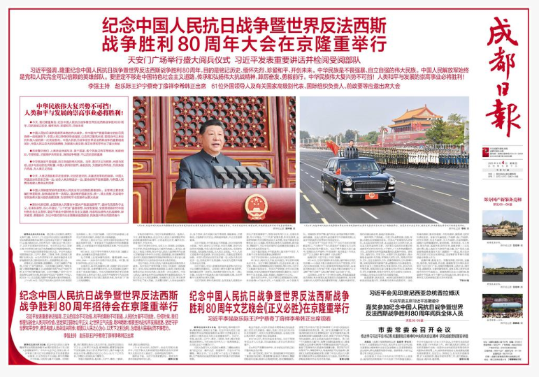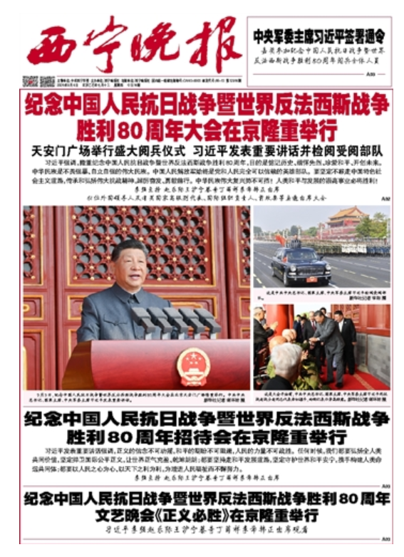 抗战胜利80周年大阅兵,媒体如何精彩定格呈现?收集整理了140家报纸的头版供参考。相信还有不少出彩版面,未能收录到这条推文中,欢迎以留言的形式补充。本条推文内容综合编前会、观媒、新京报传媒研究公众号及网友分享,在此一并致谢,当然,小编也查询整理了很多。特别说明:排序不分先后。