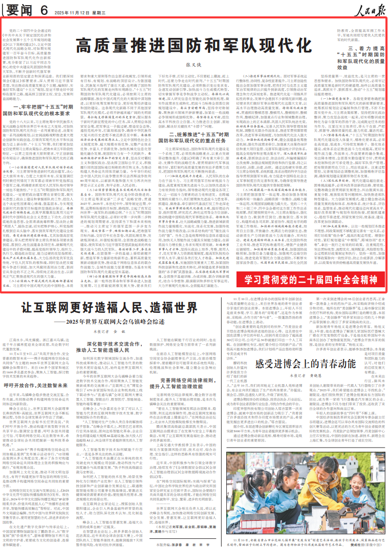 党的二十届四中全会通过的《中共中央关于制定国民经济和社会发展第十五个五年规划的建议》(以下简称《建议》),立足中国式现代化战略全局,对如期实现建军一百年奋斗目标、高质量推进国防和军队现代化作出新部署,充分彰显了以习近平同志为核心的党中央建设巩固国防和强大军队、不断开创新时代强军事业新局面的坚定意志和深谋远虑。我们要深刻领会《建议》部署要求,深入贯彻习近平强军思想,突出推动高质量发展这个主题,编制好、实施好军队建设“十五五”规划,坚定不移走好中国特色强军之路,提高捍卫国家主权、安全、发展利益战略能力。