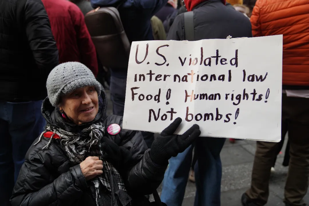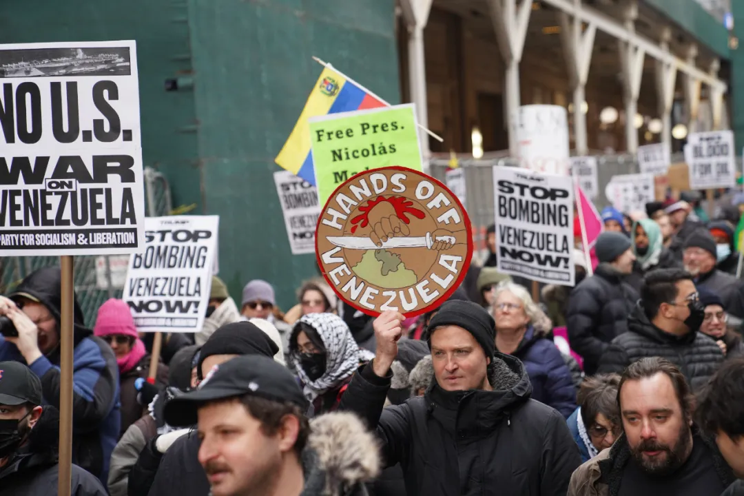1月3日,近千名民众在美国纽约举行集会游行,抗议美国对委内瑞拉实施军事打击。新华社记者张凤国摄