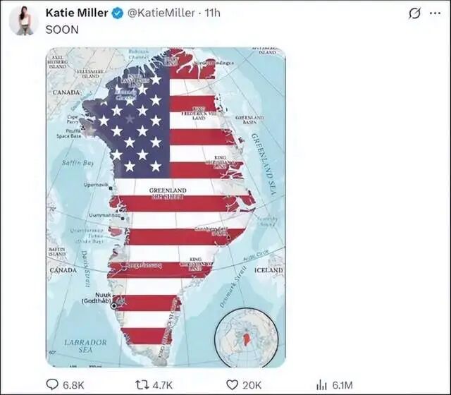 美方发布被美国旗覆盖的格陵兰岛地图