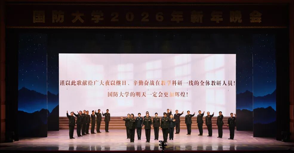 岁序更替,华章日新。1月8日晚,国防大学在红山口教学区国防大讲堂隆重举行2026年新年晚会,全校官兵齐聚一堂、相聚云端,共庆新年、共赴未来。参加大学党委七届九次全体(扩大)会议的同志观看了演出,大学党委常委、待遇五级以上专家教授和受大学以上功勋荣誉表彰的同志在观众席前排中间位置就座。