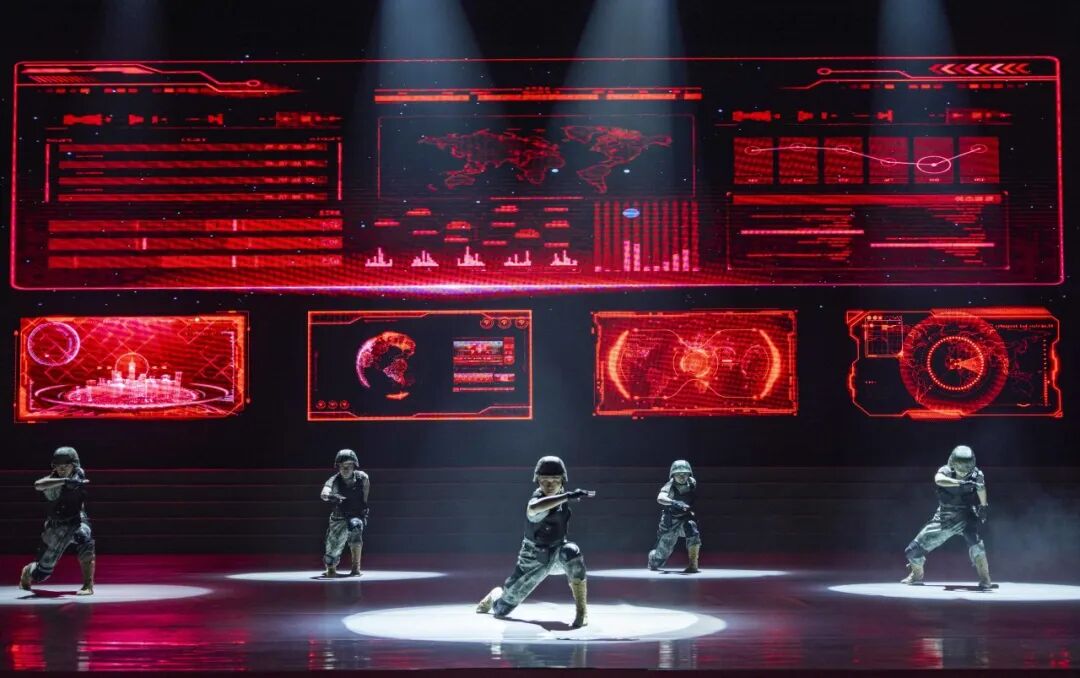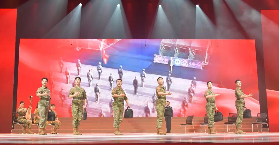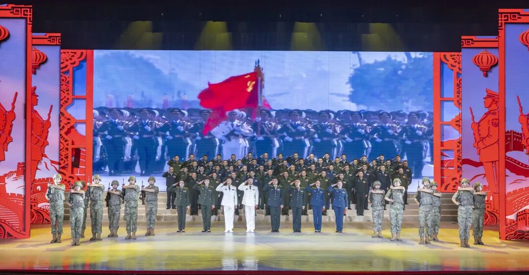 晚会在战舞《战无不胜》中震撼开场,警通勤务营官兵以刚劲有力的动作、虎虎生威的气势,展现了全校官兵在政治整训中淬炼、在备战打仗中昂扬奋进的精神状态。