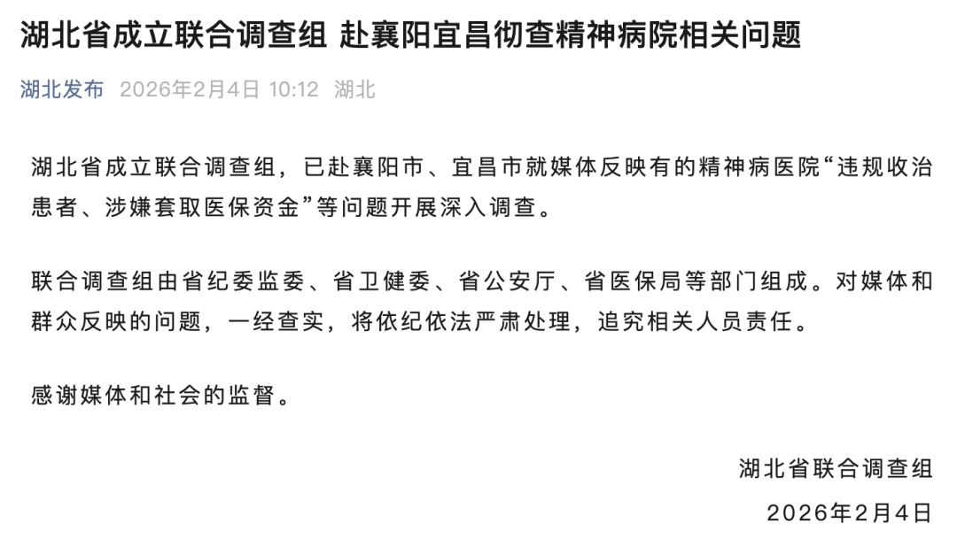 据《新京报》调查报道,湖北襄阳多家精神病医院承诺“免费住院、免费接送”,争相抢夺病患资源,甚至组织人员下乡招揽患者。