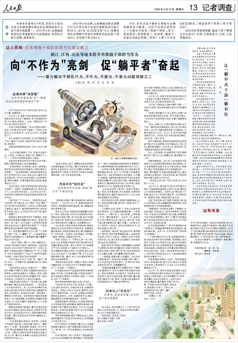 如何用好考核指挥棒,激发干部干事创业内生动力?近日,人民日报记者在浙江、江西、山东等地探访。