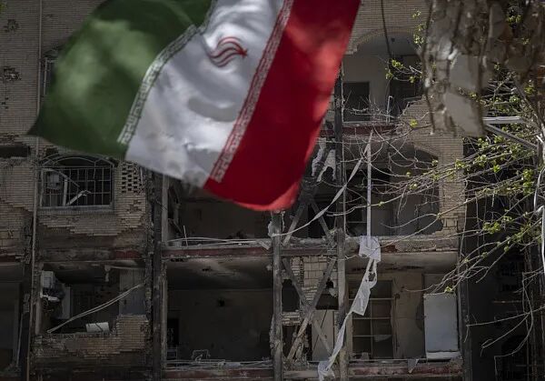 当地时间4月14日,伊朗德黑兰,一面伊朗国旗在南部沙希德·博罗杰迪住宅区的一栋建筑前飘扬。图源:视觉中国