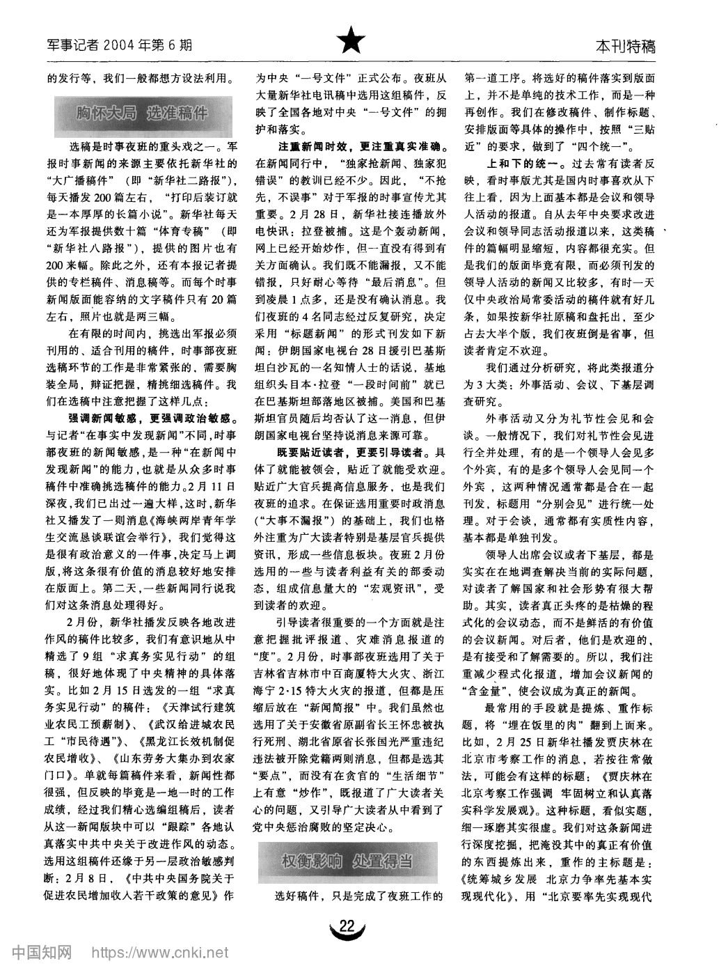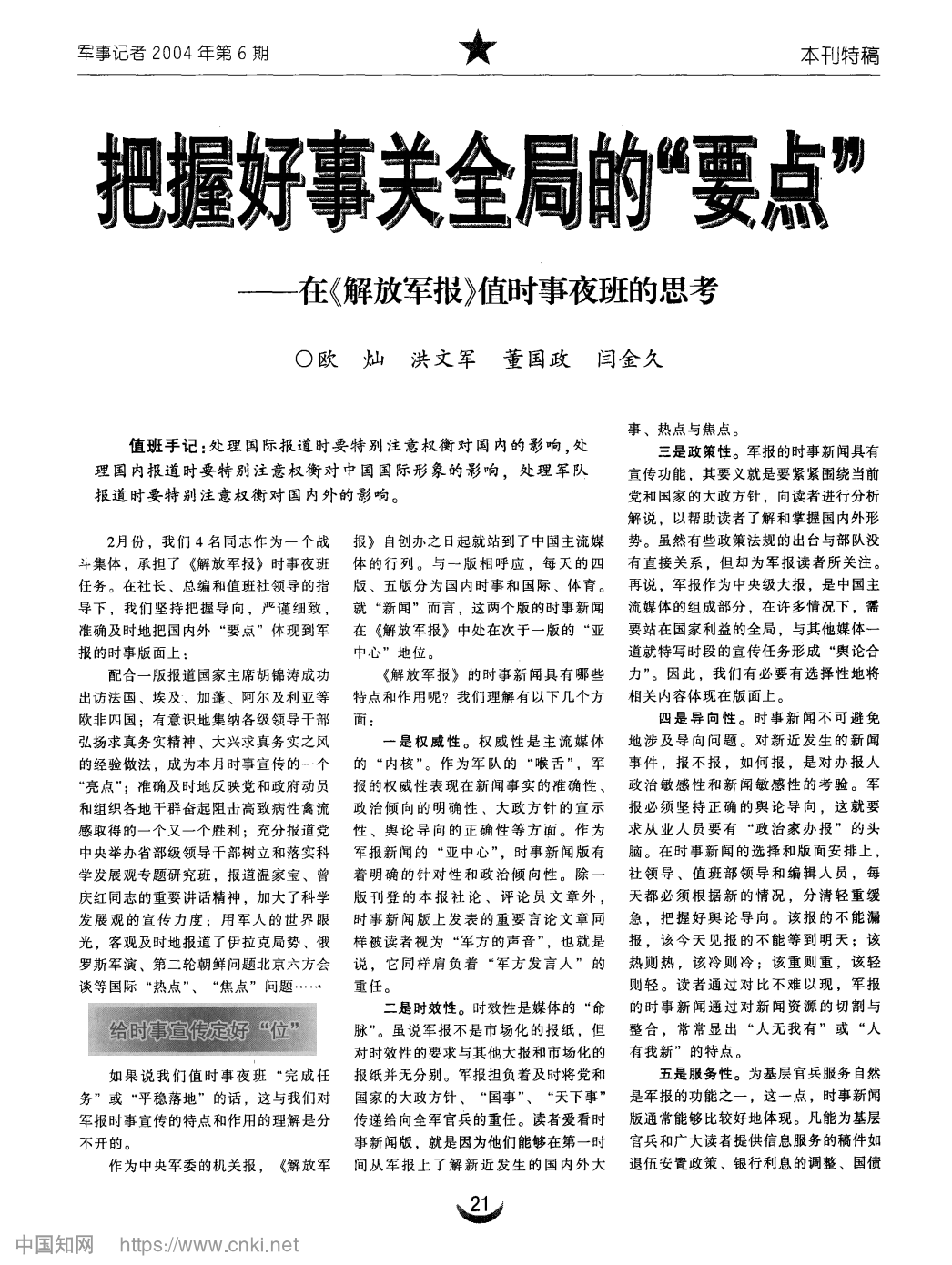 把握好事关全局的 “ 要点 ” ——在《解放军报》值时事夜班的思考