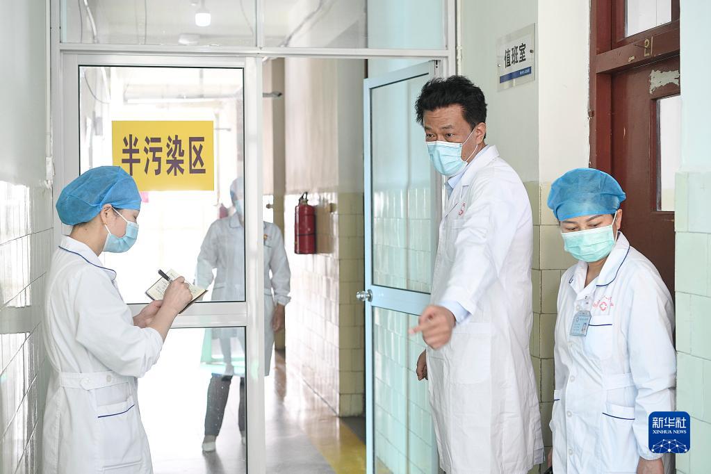 李群在云南腾冲新冠定点医院指导防控工作(2020年5月2日摄)。新华社发