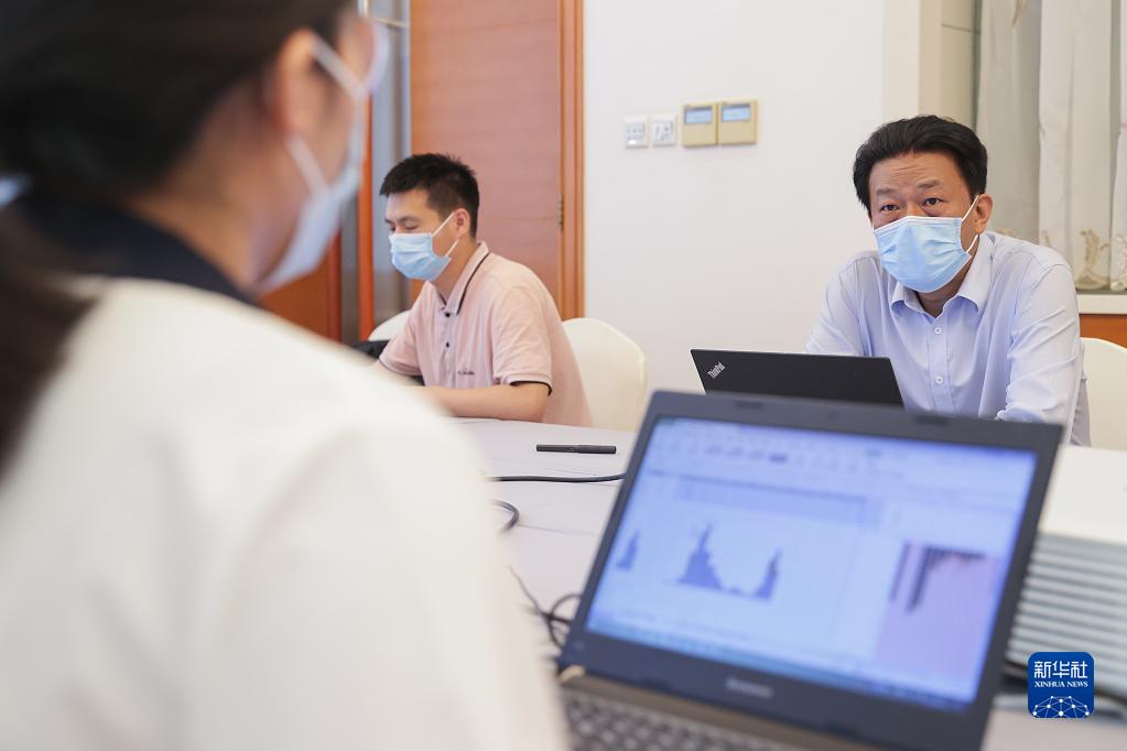李群(左)在北京指导流调溯源数据分析工作(2022年9月18日摄)。新华社记者 张玉薇 摄