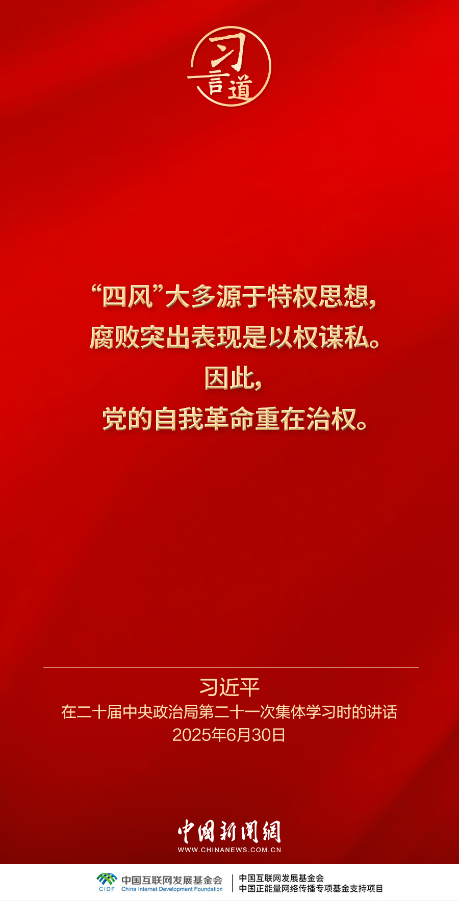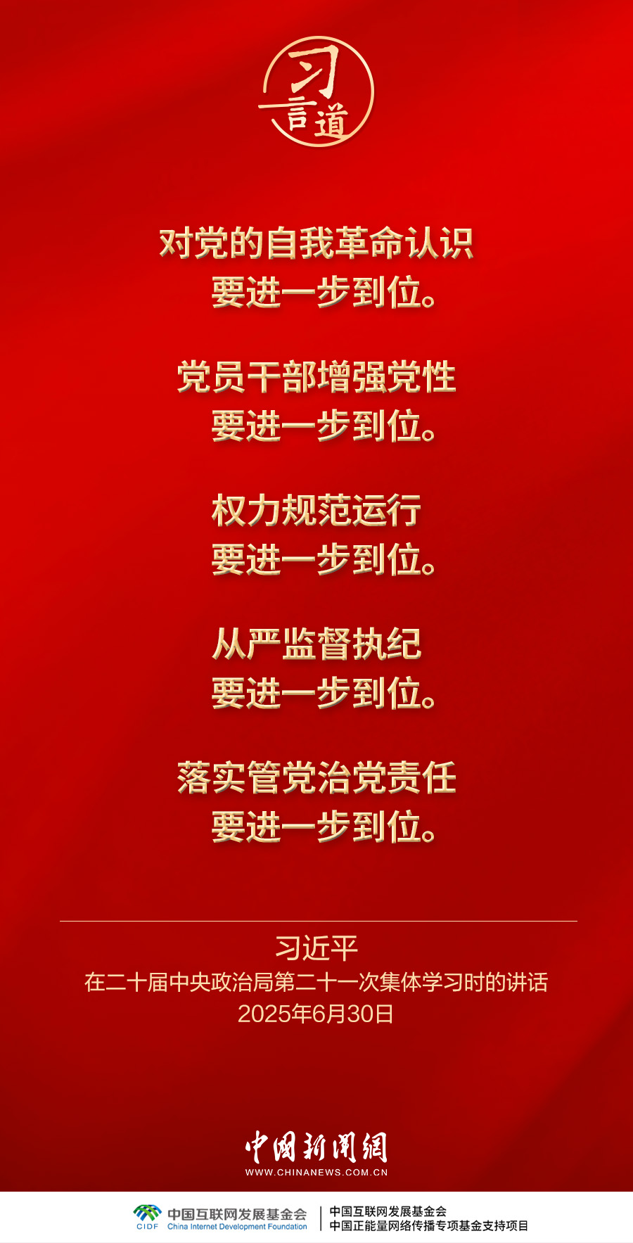 12月1日出版的《求是》杂志发表中共中央总书记、国家主席、中央军委主席习近平的重要文章《推进党的自我革命要做到“五个进一步到位”》。这是习近平总书记2025年6月30日在二十届中央政治局第二十一次集体学习时讲话的主要部分。
