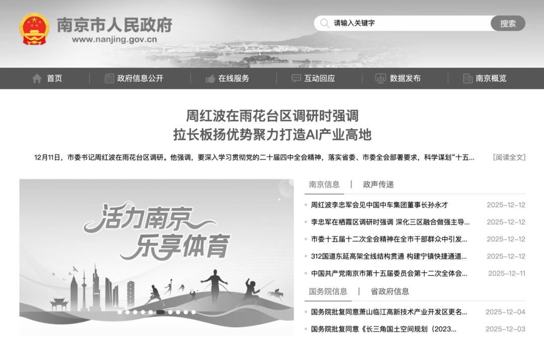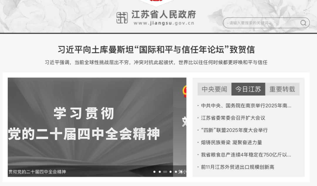 江苏省政府官网、南京市政府官网、江苏卫视图标等,在今天均已变成了黑白色。