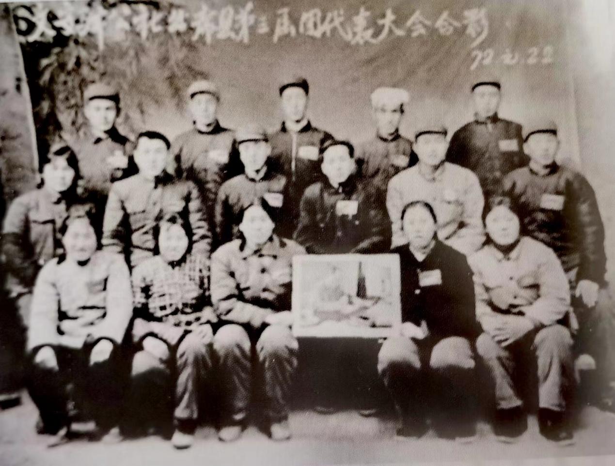 蔡玉珠(前排左三)出席延川县第三届团代会时与文安驿公社代表合影。