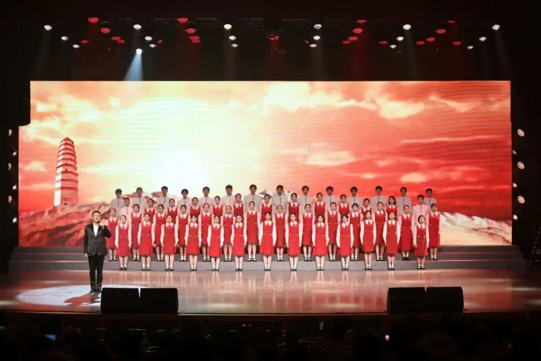“夕阳照耀着山头的塔影,月色映照着河边的流萤,春风吹遍了坦平的原野,群山结成了紧固的围屏,啊延安!”,最后,由铁路文工团成龙老师领唱、全体成员合唱的《延安颂》,以磅礴旋律重现革命岁月中“群山结阵、热血奔腾”的壮阔气象,既表达了对延安精神的礼赞,亦成为无数青年奔赴光明的精神号角,致敬永不褪色的信仰力量,将文艺演出推向高潮。
