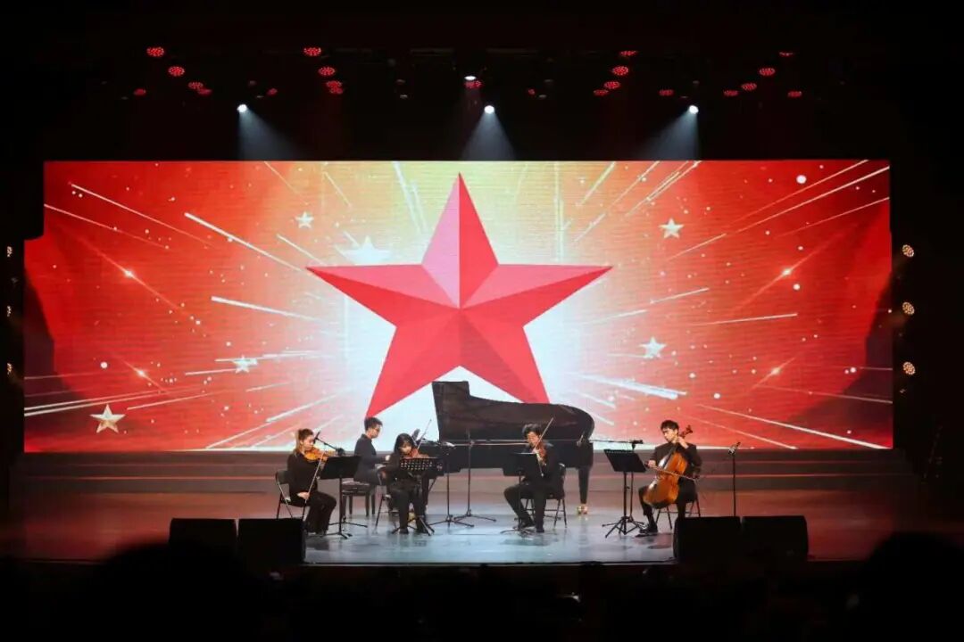 中国人民大学附属小学金帆京剧团演出的《红色娘子军》,融合传统唱腔与现代舞台手法,倾情讲述海南女子战斗连队的英勇事迹,以铿锵锣鼓、激昂唱段展现革命豪情,致敬红色精神。中国人民大学陕公合唱团附属中学金帆合唱团合唱《保卫黄河》《怒吼吧黄河》,展现青年学生用歌声缅怀革命先辈,致敬英雄,传递让黄河精神扎根青春心底、让抗战精神在新时代焕彩、用青春力量续写民族复兴的壮丽篇章的坚定信念。中国人民大学艺术学院乐器五重奏《钢铁洪流进行曲》《红星歌》,以钢琴的铿锵与弦乐的雄浑交织,展现出经典的赤诚情怀和洪流般的昂扬气势,让红色旋律迸发磅礴力量。